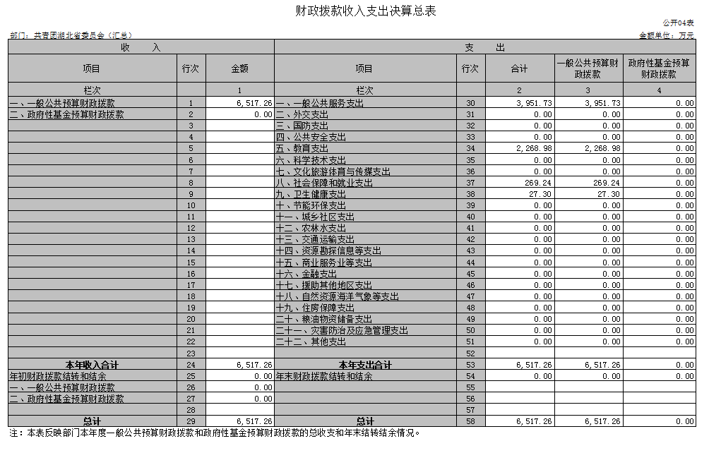 第二部分 共青团湖北省委2019年度部门决算公开表